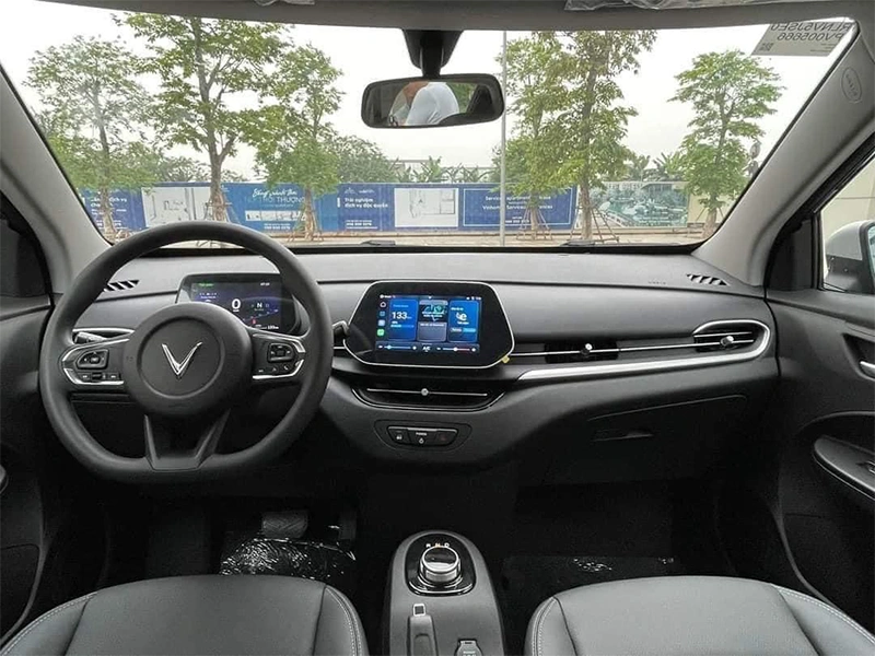 Đó là dải crom tạo hình chữ V lớn, trải rộng sang 2 bên, ôm trọn logo thương hiệu. Song dải crom trên VinFast VF5 không được tích hợp LED như “đàn anh” VF 8 hay VF 9.